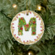 enfeites de natal monogrammed iniciais de M - círculo. Esta decoração requintado da árvore de Natal da letra M dará a seu xmas um toque tradicional com uma sensação personalizada moderna. Projetou olhar como uma árvore de abeto coberta com os presentes e os presentes esta letra a em um ornamento circular são cercados por um quadro do ouro com bagas vermelhas. De luxo e tenda sobre isto é um luxo disponível para você necessidades da decoração do feriado. Dobre tomado partido para o impacto extra este verde e a imagem vermelha em um fundo do branco nevado é um favorito com negócios igualmente. Alfabeto completo disponível.