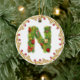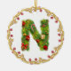 enfeites de natal monogrammed iniciais de N - círculo. Esta decoração requintado da árvore de Natal da letra N dará a seu xmas um toque tradicional com uma sensação personalizada moderna. Projetou olhar como uma árvore de abeto coberta com os presentes e os presentes esta letra a em um ornamento circular são cercados por um quadro do ouro com bagas vermelhas. De luxo e tenda sobre isto é um luxo disponível para você necessidades da decoração do feriado. Dobre tomado partido para o impacto extra este verde e a imagem vermelha em um fundo do branco nevado é um favorito com negócios igualmente. Alfabeto completo disponível.