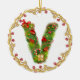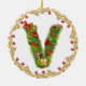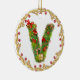 enfeites de natal monogrammed iniciais de v - círculo. Esta decoração requintado da árvore de Natal da letra v dará a seu xmas um toque tradicional com uma sensação personalizada moderna. Projetou olhar como uma árvore de abeto coberta com os presentes e os presentes esta letra a em um ornamento circular são cercados por um quadro do ouro com bagas vermelhas. De luxo e tenda sobre isto é um luxo disponível para você necessidades da decoração do feriado. Dobre tomado partido para o impacto extra este verde e a imagem vermelha em um fundo do branco nevado é um favorito com negócios igualmente. Alfabeto completo disponível.