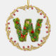enfeites de natal monogrammed iniciais de W - círculo. Esta decoração requintado da árvore de Natal de W da letra dará a seu xmas um toque tradicional com uma sensação personalizada moderna. Projetou olhar como uma árvore de abeto coberta com os presentes e os presentes esta letra a em um ornamento circular são cercados por um quadro do ouro com bagas vermelhas. De luxo e tenda sobre isto é um luxo disponível para você necessidades da decoração do feriado. Dobre tomado partido para o impacto extra este verde e a imagem vermelha em um fundo do branco nevado é um favorito com negócios igualmente. Alfabeto completo disponível.