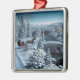 Uma bela cena de carona de trenó fotografada numa noite de inverno nevada decora esta adorável ornamentação de árvore de Natal.