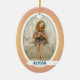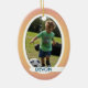 Enfeites de natal duplo de fotos. Ornamento de árvore oval, cerâmica, com modelos em ambos os lados para adicionar uma foto vertical 4x6 (ou similar). Economize dinheiro e comprar um ornamento para dois filhos ou use duas fotos da mesma criança.