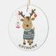 Uma rena adorável vestindo uma cinza. Um presente de Natal Maravilhoso que certamente será precioso por muitos anos.
