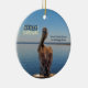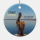 Crie uma marca personalizada de férias com este Enfeites de natal de cerâmica personalizável, com uma bela foto Pelican e um design de "Feliz Natal". Perfeito para presentes únicos de férias ou decoração doméstica.
