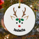 Nosso ornamento personalizado da face das renas de Natal é de dois lados, e apresenta um nariz vermelho distinto, orelhas, galhadas e sagrado festivo. É ideal para fazeres de condecoração para toda a família. Personalize com um nome ou o texto de sua escolha.