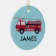 este Enfeites de natal de caminhão de bombeiros é o presente perfeito para um bombeiro ou um rapaz/menina que é um amante do motor de incêndio. Simplesmente personalize o nome e escreva o nome do seu próprio filho personalizado.