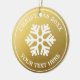 Celebre a temporada com este ornamento de feriado personalizado com um floco de neve branco rústico contra um fundo de ouro falso. Adicione seu texto personalizado para personalizar. Perfeito para um casamento no inverno ou presente especial.