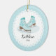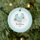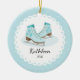Datado & personalizou pares bonitos de enfeites de natal dos skates de gelo ajustados em um fundo azul. Um presente maravilhoso do Natal sure a ser estimado por muitos próximos anos.