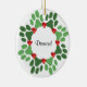 Personalize uns enfeites de natal para seu animal de estimação especial. Gráficos frente e verso com uma grinalda verde do impressão da pata decorada com as bagas vermelhas brilhantes. Você pode personalizar com seu nome de animal de estimação. Um presente perfeito para o amante do cão. Ou personalize isto como um presente a seu veterinário, groomer do cão ou baby-sitter do animal de estimação.