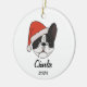 Celebre a primeira temporada de festas de seu amigo peludo com nosso adorável Enfeites de natal Pied Frenchie Santa Hat. Este encantador ornamento apresenta uma ilustração encantadora de um Bulldog Francês vestido com um chapéu de Papai Noel, com a adição especial de "Meu Primeiro Natal" de um lado. O que o torna ainda mais único é a opção de personalizar o outro lado com o nome do seu animal de estimação e o ano, criando uma manutenção estimada para comemorar este marco especial.