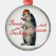 Este Enfeites de natal humorístico tem um porco com uma coroa e nos avisa para banquete em peru, NÃO bacon! De uma ilustração vintage. Você pode ordenar esta imagem em um ornamento em círculo simples, uma forma cardíaca ou um quadrado - você escolhe.