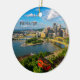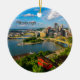 Vista de Dia/Noite do Skyline de Pittsburgh neste Ornamento de Férias. Um deve ter para a Árvore de Pittsburgh! Compartilhe com amigos ou parentes um presente "uau" este ano.