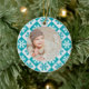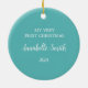 Celebre o primeiro Natal do seu bebê recém-nascido com este ornamento personalizado de memorabilidade com um design de floco de Neve Azul e Branco.
