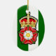 O crachá da dramática e amada família real Tudor, de Henrique VII a Elizabeth I, é colocado sobre um fundo das cores Tudor Livery de verde e branco. O rosa, que combina as rosas vermelhas brancas e rivais das casas York e Lancaster, está colocado sob a heráldica Coroa Tudor.