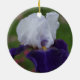 Uma iríte roxa e roxa escura adormecida adorna este Enfeites de natal de flor. O ornamento perfeito para o amante da íris no Natal ou a qualquer momento. Copyright ornamentsbyhenis
