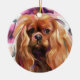 Pendure uma pequena peça de arte na sua árvore de Natal com este ornamento do Rei Ruby Cavalier Charles Spaniel Holidays. Fundo floral, cores de vintagem cor-de-rosa suave.