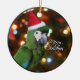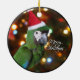 Ornamento severo bonito do Macaw! O papagaio veste um chapéu vermelho brilhante do papai noel na frente de um fundo colorido do inverno. Divertimento para a árvore do Xmas do amante do pássaro esta época natalícia.