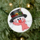 Este Enfeites de natal cerâmico é mostrado aqui com um impressão de boneco de neve de férias. O verso diz Joy em vermelho. Personalize este item ou comprar como está. Imagem do stock