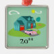 Este teste padrão suburbano retro customizável dos enfeites de natal da casa caracteriza uma casa americana típica em uma vizinhança americana típica, cerca de 1950. Uma casa da cerceta com um telhado do azul de pavão, e as janelas de turquesa são deslocadas perfeitamente por uma porta vermelha vibrante da porta da rua e da garagem. Um rosa clássico, carro convertível finned dos anos 50 é estacionado na entrada de automóveis pitoresca. Os flamingos Kitschy, plásticos, cor-de-rosa olham direitos em casa na forma do Bumerangue da grama verde recentemente segada que descansa em um fundo do jade. O gramado manicured é ajardinado com árvores lunáticas. O feijão-roxo deu forma a nuvens e um sunburst amarelo de um sol deixou-o sabê-lo é apenas um outro dia glorioso no subúrbio moderno do meio século. Personalize para um presente original!