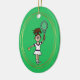 Este ornamento mostra a imagem gráfica de uma tênis fêmea com cabelo castanho escuro. Por trás você pode personalizar isso com um nome e um ano. Ou coloque o que quiser nas costas. Isto faz um presente de excelente para o amante de tênis que você conhece no Natal, aniversário, Tênis Day, colega de trabalho, etc. É uma forma excelente de representar o tênis na família na árvore de Natal. Desenhado por Sheila Cicchi, Brownielocks.com. Todos os Direitos Reservados. NOTA: devido ao estilo design, você só pode comprar isso em ornamentos OVAL.