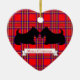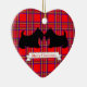 Os terrores escoceses negros contra um padrão de xadrez vermelha decoram este ornamento de feriado. Use este adorável ornamento de cachorro escocês como decoração de árvores de Natal, decoração de férias, decoração de Natal, etc... Os designs são de arte original.
