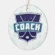 Design do estilo 'COACH' com escudo retrorreflector, com bastões de hóquei em gelo cruzados e punho. Design de diversão para treinadores de hóquei em gelo, e um monte de ideias de presentes para o treinador da sua equipe. Feriados / Enfeites de natal. Procure na minha loja muitas mais designs com um fundo de Natal legal! Excelente para as árvores de Natal dos fãs de esportes, e excelentes presentes para a sua família e amigos doidos de esportes.