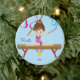 Personalize & os enfeites de natal datado que caracterizam um gymnast triguenho bonito que faz uma separação em um feixe de equilíbrio ajustado em um fundo azul das bolinhas com uma fita #1. Um presente do Natal da maravilha sure a ser estimado por muitos próximos anos.