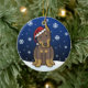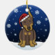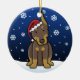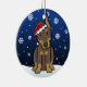 Enfeites de natal vermelhos bonitos do Doberman, tirados em desenhos animados do kawaii! Esta raça adorável do cão está vestindo um chapéu vermelho do papai noel, e os flocos de neve estão caindo toda em torno dele. Absolutamente querido, perfeito para a árvore do Xmas do amante do cão!