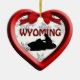 Um design gráfico de flocos de neve e um movente de neve em um quadro vermelho estilo 3D em um Enfeites de natal de forma cardíaca Wyoming. O ornamento tem modelos de texto para sua personalização. ©2012
