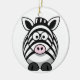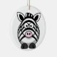 Quem não ama zebras? Há algo atraente sobre esses animais negros e brancos que apela a muitas pessoas, e é por isso que este ornamento ficará tão bom na sua árvore de Natal. A imagem neste ornamento é basicamente uma zebra de desenho preto e branco e é realmente fofa!