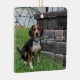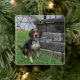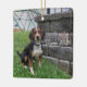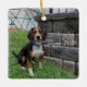 Zeus Beagle 2020, Ornamento da Árvore de Natal. Imagem de Zeus na frente deste ornamento quadrado.