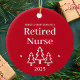 Primeiro Natal como um ornamento vermelho de enfermeira aposentada. Decor cerâmico de porcelana elegante com árvores e estrelas de Natal.
