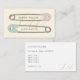 Pinos de fralda fechados, cor-de-rosa e azul, sobre um fundo colorido creme com espaço para detalhes. Esta cartão de visita serviria aos profissionais que lidam com cuidados infantis, enfermeiros e serviços de parteiras e doulas