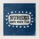 "Enfermeiras se divertem mais" é um design de texto bonito com forma de sotaque branca cercado por pontos brancos.