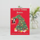 Este gato engraçado pendurado numa Árvore de Natal pode enviar uma mensagem a mulheres cansadas, administradores de The Holidays, que elas precisam ficar lá dentro. Não dura para sempre, mesmo que pareça que vai durar. Um bom cartão vermelho de férias pode ser apenas o sorriso que ela precisa. A tipografia "Hang in Here", personalizada com um nome e texto de Holiday, é complementada pelo engraçado smoking pendurado na ilustração da árvore de Natal. Faz um cartão de Natal excelente para todas as mulheres da sua vida que fazem a mágica de férias.