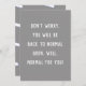 não se preocupe se voltará ao normal em breve, bem normal para si, cartão de cinza bonitinho com padrão de injeção/vacina no dorso.