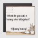 "Como se chama um coelhinho que diz piadas? Um coelhinho engraçado! Esta piada pode ser alterada por você. Coelho castanho, cortado e boliche cheio de leite. Café de cor.