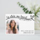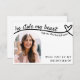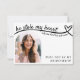 Um cartão de proposta de madrinha bonitinho com foto, linha cardíaca e citação engraçada: "Ele roubou meu coração, me ajudou a roubar seu sobrenome". Personalize o texto e uma imagem de cada uma ou das suas damas de honra.