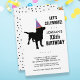 O Convite de aniversário perfeito para amantes de cachorros com um cão de laboratório negro vestindo um chapéu festivo - basta adicionar seus detalhes para personalizar. Altere facilmente a cor de fundo clicando em personalizar e rolando para baixo até o selecionador de cores. Funciona bem para crianças e festas de aniversário adultas.