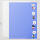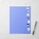 Santa Clause, rena, pinguim e boneco de neve cantando a famosa canção: Nós desejamos a você um Feliz Natal. Uma ilustração engraçada, fofa e humorística para o Natal e Ano Novo. Fundo azul com partituras.