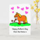 Um desenho animado de um pônei contente, com uma flor saborosa para Dia de os pais. A mensagem diz "Happy Dia de os pais from the Horse x" ( feliz do cavalo x). O cartão tem um fundo branco com corações cor-de-rosa e letras pretas. Dentro, o cartão diz "Não posso evitar se ela me ama mais do que você". Todos sabem que uma mulher ama o cavalo mais do que o marido! Personalize facilmente este cartão editando o texto do modelo na frente e no dentro. Obrigados para ver meus designs - perfeito para cada Pai de cavalo!