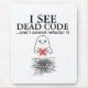 Mostre o seu humor de codificador com esta almofada de rato divertida com o texto "Eu vejo o código do Morto ... e não posso reformá-lo." Estilo de vetor plano mínimo com tipografia ousada e brilhante o torna atraente e divertido. Perfeito para programadores, engenheiros de software e entusiastas tecnológicos que amam o humor geeky. Ideal para qualquer espaço de trabalho ou configuração do escritório doméstico.