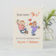Um convite para noivados de estilo cartoon informal onde uma cara de sorte acabou de propor ao seu querido, e "ela disse sim!" Um convite perfeito para pessoas que querem manter as coisas informais e iluminadas, mas ainda na moda e encantadoras. Todo texto pode ser modificado.