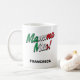 Engraçado italiano dizendo caneca Mamma Mia. Mamma Mia num guião de bandeira italiana com uma sombra negra. Tipo personalizado em san preto na parte inferior da caneca. Sicilianos e italianos usam muito esse ditado!
