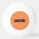 Esta engraçada bola de pingue-pongue diz "OUCH!" em ambos os lados em uma fonte engraçada e engraçada, um lado é laranja e um lado é amarelo.