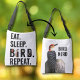 Amantes de pássaros, passarinhos, observadores de pássaros, ornitólogos e astrosos da natureza vão adorar esta bolsa de tote de corpo duplo engraçada e moderna celebrando seu passatempo favorito com o ditado "Coma. Durma. Pássaro. Repita" de um lado e "Nerd de pássaro" do outro. Quer sejam hobbistas que apreciem os pássaros em seus quintais, ou um fotógrafo de vida selvagem sério que adora documentar as vidas interessantes desses belos passarinhos, eles vão amar as pássaros bonitinhos espiando pelas cartas na frente. Um cardeal vermelho brilhante, uma pomba macia, um pica-pau descendente adorável, e um pica-pau azul impressionante fazem a sua aparência nesta bolsa, tal como gostam frequentemente de visitar os nossos pátios! No verso, uma renderização artística de um pica-pau vermelho acompanha as palavras "nerd de pássaro" ou outra frase curta ou nome que você gostaria de incluir. Adorei pássaros há anos, e gosto de fotografar os visitantes dos meus alimentadores de quintal, assim como outros que encontro em parques locais. Eu planejo comprar minha própria bolsa e levá-la às minhas aventuras de pássaros. Espero que faça o mesmo! Fotos e design por Amanda Renee, Designs digitais CtrlZ