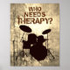 poster de tambor legal com silhueta de kit de tambor e a legenda "Quem precisa de terapia?" Que excelente adicional ao seu estúdio ou mancaverna, ou o presente perfeito para o músico ou amante da música em sua vida! Visite minha loja em zazzle.com/drumjunkiegraphics para mais ideias sobre música e presentes para músicos! Copyright Linda Smith - todos os direitos reservados
