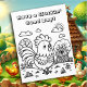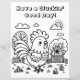 Página de coloração para adultos, bonita para crianças, adolescentes ou adultos, Linhas simples e grossas para facilitar a coloração. Um galo giro numa fazenda e um trocadilho de galinha engraçado, citando, "Tenha um bom dia de gargalhada".