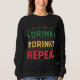 Engraçado Sueco de Natal Feio Beer Script de Cerveja Camisetas Mulheres mostra o texto "Drink Drink Drink Repeat" em uma moda tipografia de tricô de inverno destacada com renas, árvores de Natal e canecas de cerveja. Perfeito para festas de Natal e feriados e comemorações. Elaborado por ©Evco Holidays www.zazzle.com/store/evcoholidays