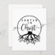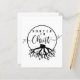 Enraizado no Cristo, este design apresenta um design preto e branco com raízes de uma árvore e texto dizendo "Enraizado no Cristo".